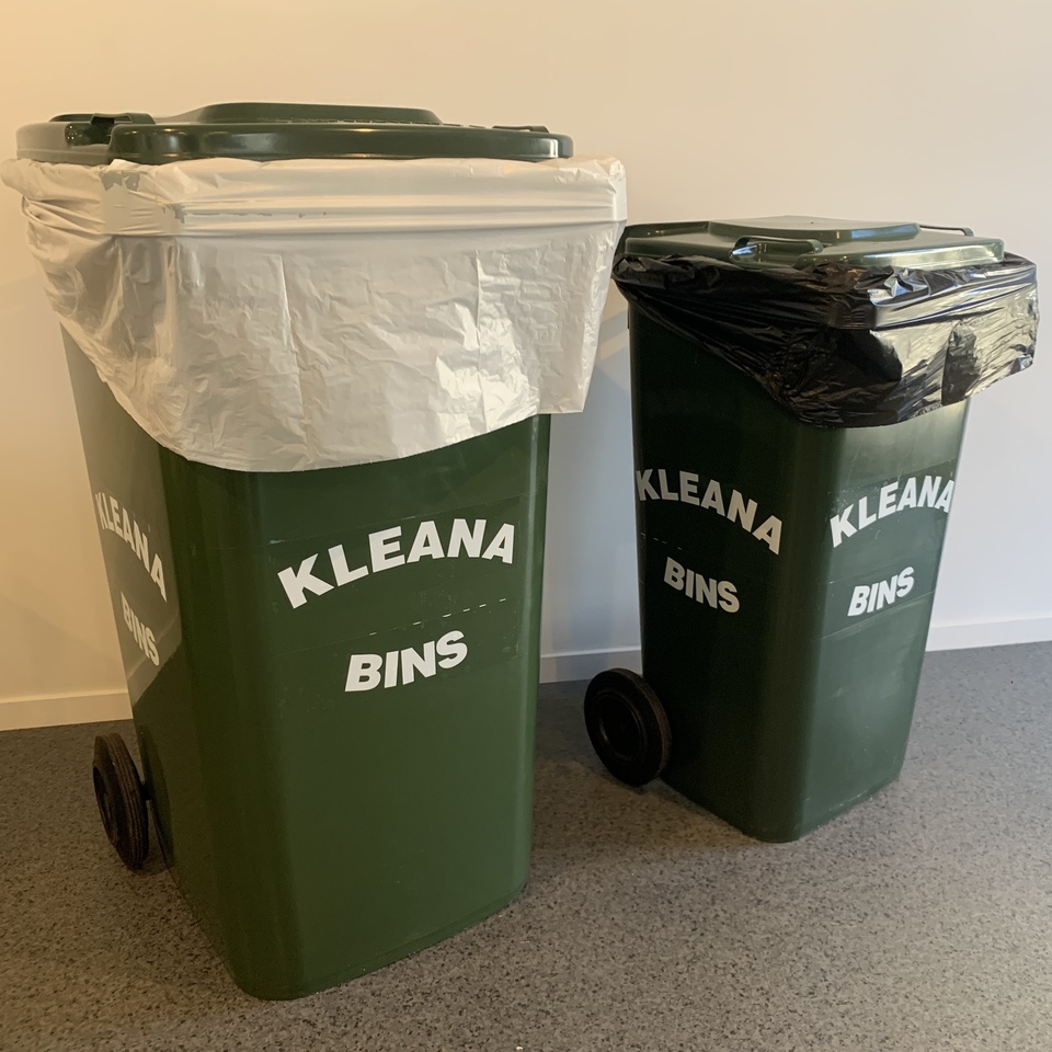 Kerbside Collection means you put the rubbish bins out as close as possible to the edge of the road - we empty the rubbish bins, replace the liner and return to the same place.